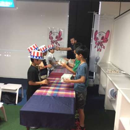 タッチザワールドでは、英語の歌やダンスで習ったり、外国のゲームを楽しんだり、本の読み聞かせをきいたりしました。外国人スタッフの方々が英語で話す言葉で楽しく活動しました。