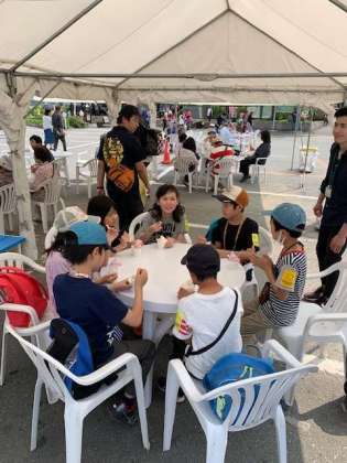 部屋で荷物整理をした後、大石公園へ行きました。公園では、ソフトクリームを食べたり、ジュースを飲んだりしました。
