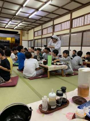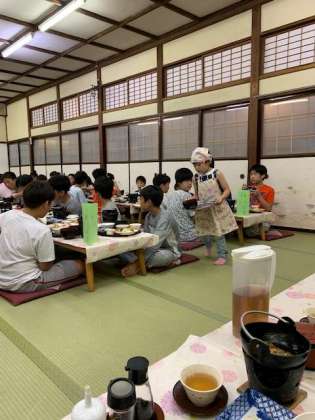 たくさんのおかずに、ご飯を6杯もおかわりした子がいました。おかわりは、手を挙げるとついでくれるシステム。女将さんとミニ女将さんがしてくれます。