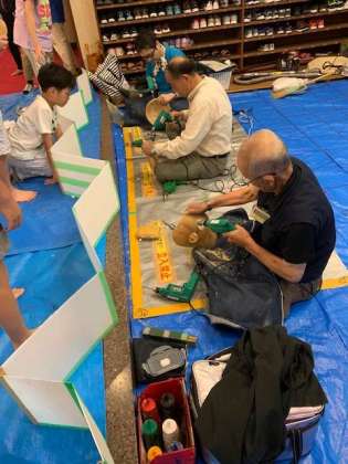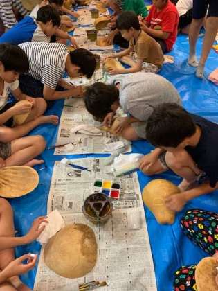 作り方を職人さんに教わり目や口に穴をあけてもらったり、着色したりします。