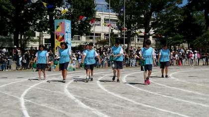 運動会で千歳中の生徒さんが、ボランティア活動をしてくれています。本当に助かります!