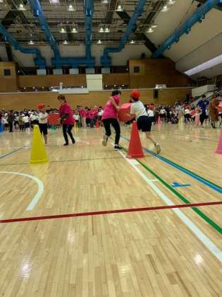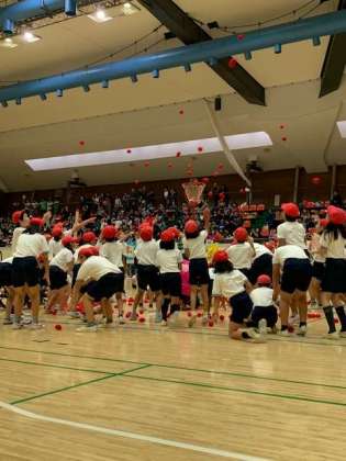午後は、親子で取り組む「みんなでたっきゅうびん」 玉入れ、ダンスと続きます。体を思い切り動かして気持ち良さそうです。最高に楽しい雰囲気です。