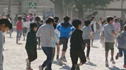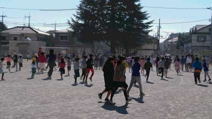 今日はマラソンDAYです。休み時間に、音楽に合わせて元気一杯走りました。
