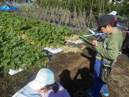 住宅街にあらわれた大きな畑に子どもたちは驚きながら、真剣にメモを取ったり話を聞いたりしていました。お仕事でお忙しい中、丁寧におしえてくださった福田農園のみなさん、本当にありがとうございました。