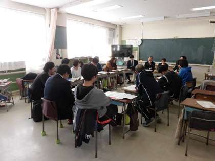 今日の午後は、千歳中学校と塚戸小学校、千歳小学校、そして祖師谷小学校の先生方が集まりました。2月12日に塚戸小で行われる研究授業の検討のためです。よりよい教育活動のために、小学校と中学校が連携して研鑽しています。