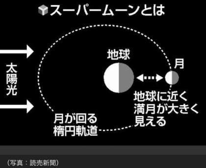 スーパームーンとは、月が地球(ちきゅう)にちかづくことで、とても大きくみえるときの満月(まんげつ)のことを言います。