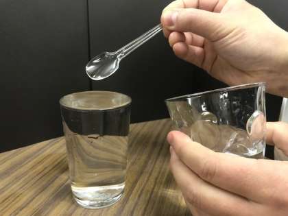 2.さらに少しずつ水を入れていく。そのとき、最後(さいご)はスプーンで一滴(いってき)ずつ入れていきましょう。