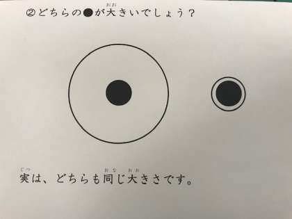 錯視と似た(にた)もので「だまし絵」というものもあるので、ぜひ調べて(しらべて)みてください。