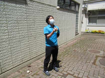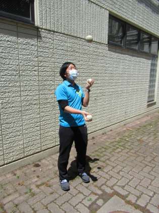 慣れてくると、片手で2つのボールを回すことができます。おうちでやる場合は周りに気をつけて、おなじ大きさのボールを使って練習してみましょう。