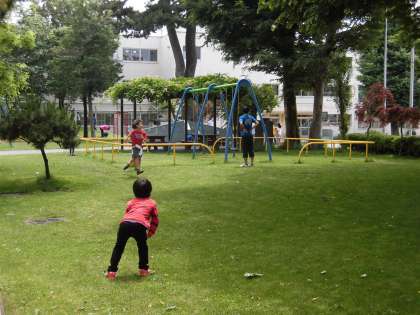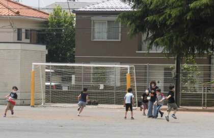 校庭で走り回ることができました。