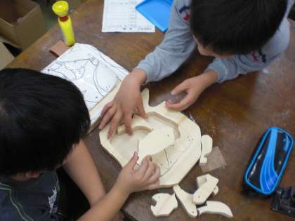 5年生は、図工の学習でパズル作りをしています。