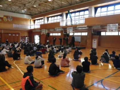 今年度は、小学校に楽団の方が来て、演奏会を開いてくださいました。