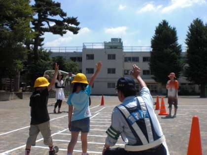 とても暑い時間帯の中、成城警察の方とボランティアのお母様方のご助力で