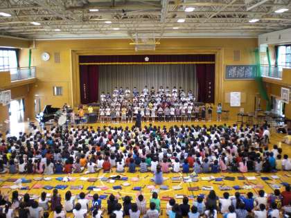 暑い体育館の中でも、子どもたちの心は音楽を楽しむ心に満ち溢れていました。