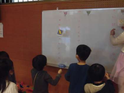 今日は、2年3組と1年3組の「おもちゃランド」です。