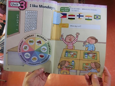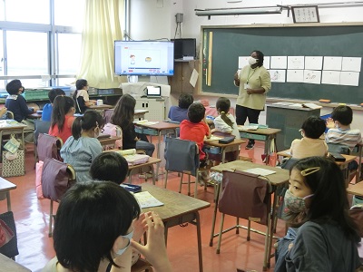 ALTの先生がスクリーンに画像を映し音楽が流します。