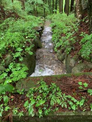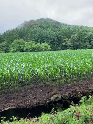 雨が上がり、雨具も必要なくなり、快適なハイキングです。段々畑やとうもろこし畑、リンゴの木を見ながら歩きます。