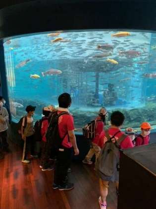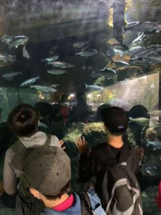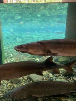大小様々な水槽の中には、川に生息する魚を中心に、両生類や爬虫類、大きなチョウザメもいました。初めて見る生き物も多く、子どもたちは、興味津々でした。