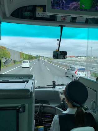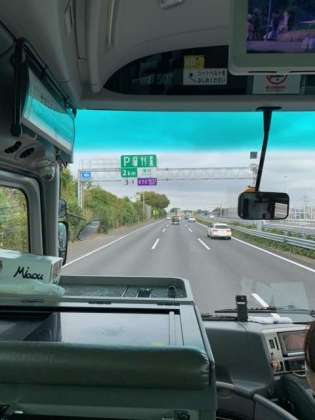 バスは順調に走行しています。埼玉県蓮田市を通過中です。羽生パーキングエリアでトイレ休憩予定です。