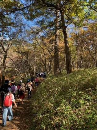 ハイキングはもうすぐゴールです。みんな疲れている様子です。よくがんばりました。