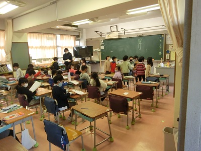 子どもたちは、葉が切り落とされていない大根を順番に持ち