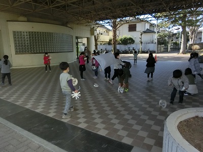 紙皿や紙コップを使い、風で動くおもちゃを作りました。