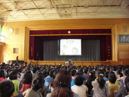11日から読書週間が始まりました。全校朝会で、校長先生が絵本を読んでくれました。