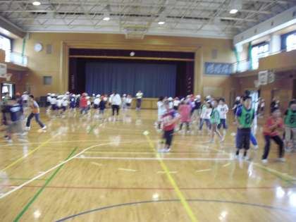 おにごっこやドッヂボールなどが多く、高学年が低学年を守りながらたたかったり、低学年の鬼にタッチされたりなど、数々のほほえましい場面が見られました。