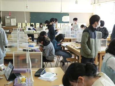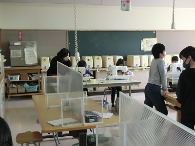 ミシンで雑巾を縫い終わると、図案に従い刺繍を施します。
