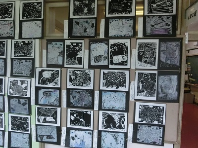 一枚は白黒の版画、もう一枚は、前述の白黒の部分を反転させて、