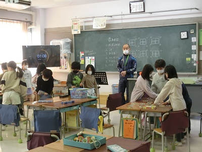 2年生が教室で昔遊びをしました。