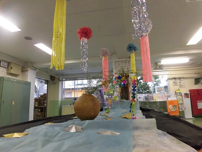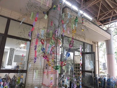カラフルな吹き流しと星の飾りも昇降口を華やかな雰囲気にしています。飾り付けをしてくださったのは美化委員の皆様です。ありがとうございます。