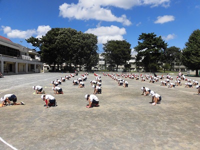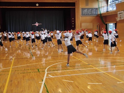 2年生と3年生は校庭で練習しました。先生が配信した動画を家でみて、動きを完全に覚えてきている子どももいます。先生達もびっくりするほど上手にできました。