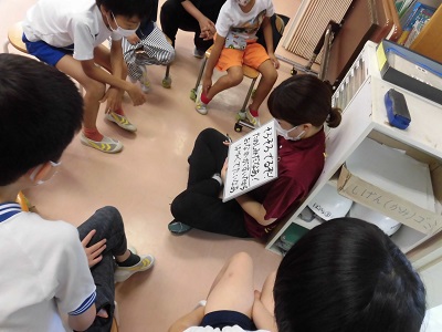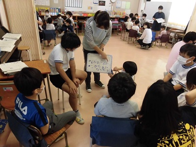 全クラス一緒に、あおむしとお月様が出会うシーンのせりふを考えました。