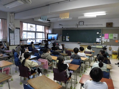 全員が集まることができないので、Zoomの配信で、各教室で見ることになりました。