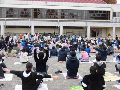 開校記念コンサートを校庭で行いました。心配していた天候も、コンサートの時間は、何とかもちました。