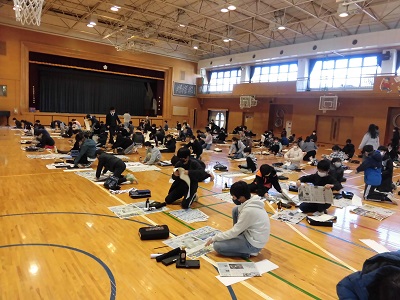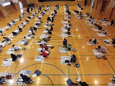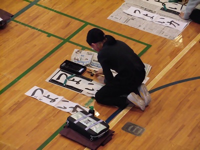 お手本をじっくり見て、筆の運び方に気を付けながら一生懸命に書きました。