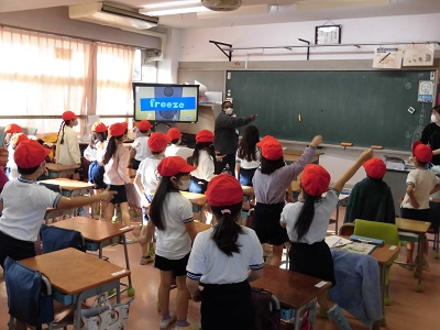 テンポの良い音楽が鳴り、子ども達も先生もDance。