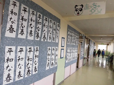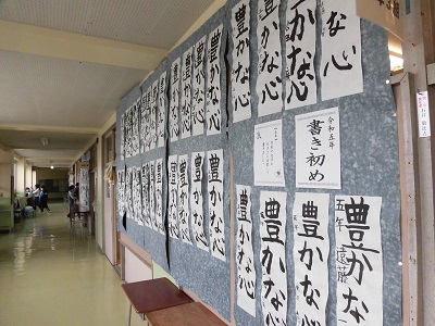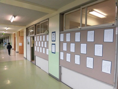 3年生以上は毛筆で書いた作品を廊下に展示しています。