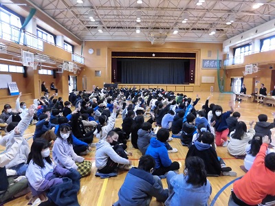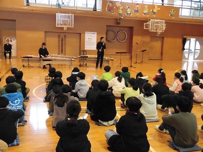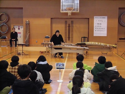 4年生と6年生が和楽器の音色に耳を傾けました。