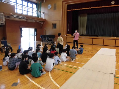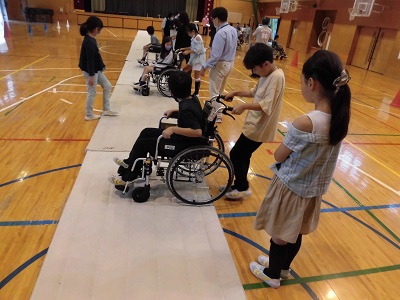 社会福祉協議会の方を講師にお招きして、体育館で行いました。
