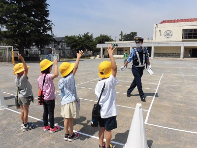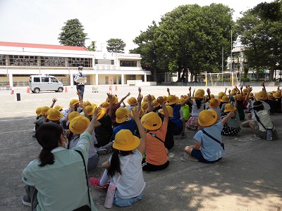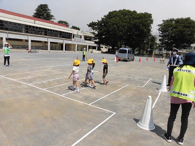 1年生は「道路の安全な歩き方」について成城警察署の方に教えていただきました。