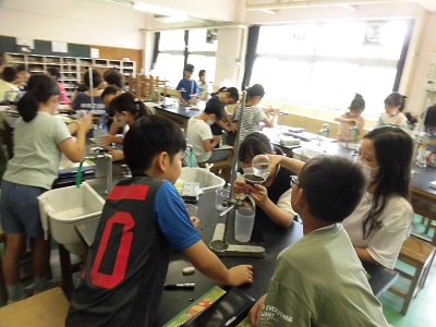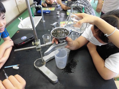 「雨水の流れ」で、砂と土の水の染み込み方の違いを調べました。