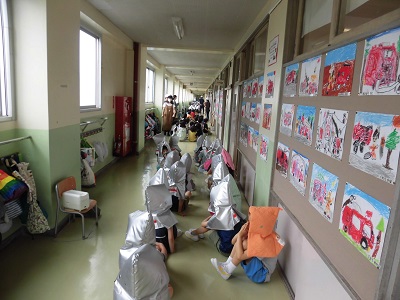 雨だったので、校庭には避難せず、廊下までとなりました。