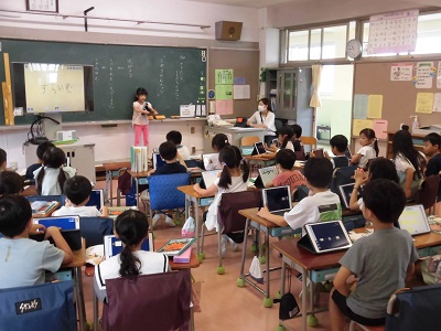 タブレットで撮影した作品の写真を大型テレビに映しました。