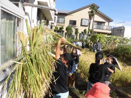 理科園で育った稲を脱穀してお米にすると、2キロほどの量になります。