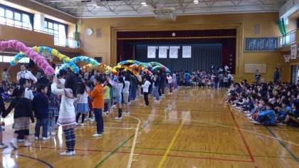 今回の五年生の仕事は、入退場の花のアーチです。それから四年生の時の後期代表委員が学校に関するクイズを自分達で考え、出題しました。