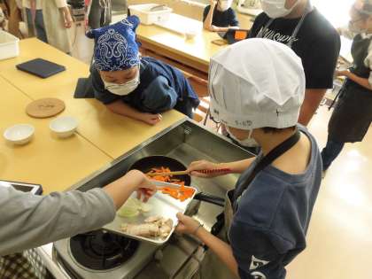 種類ごとに炒める時間が違うため、タイマーで計測して炒めていきます。