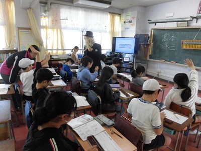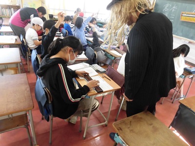 と宮本先生がほめたたえ、みんな笑顔でそろばんの学習をすることができました。