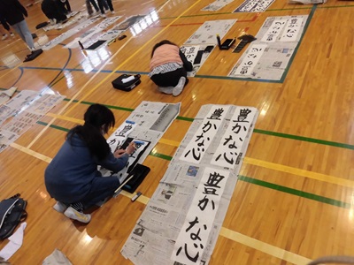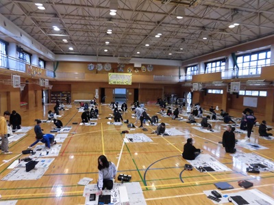 三枚書いて、一番上手に書けた一枚を書き初め展に展示します。